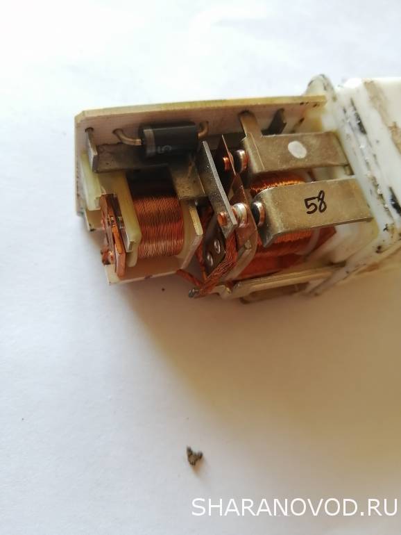Паяная нога опять отвалилась, ну и контакты реле мелкой шкуркой прошёл.