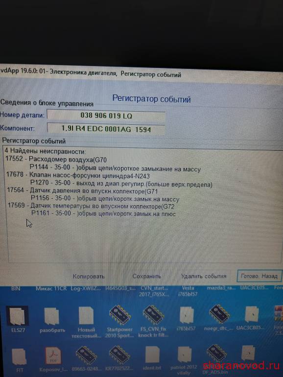 Друзья всех приветствую прошу помощи автомобиль 2003 год мотор 1.9 AUY. Коробка автомат питается на каждую передачу. Фишка с расходомера скинута чтоб он разгозовывался, предыдущий хозяин говорит что это форсунки, прошу у вас помощи может кто сталкивался, прошу помощи фото ошибок прилагаю.