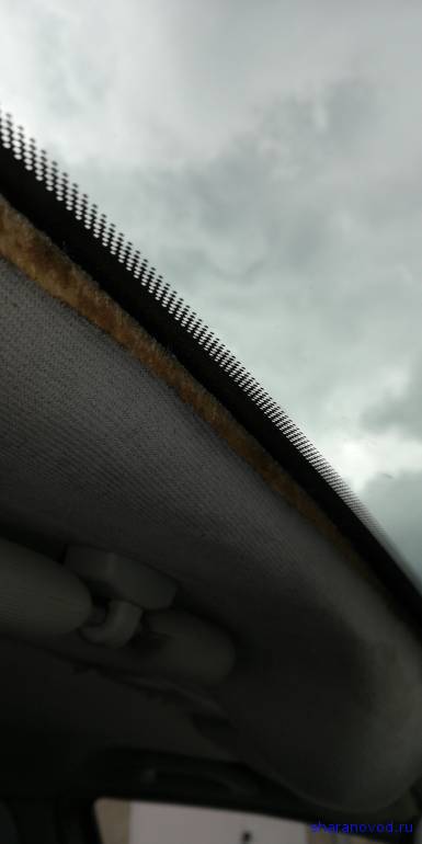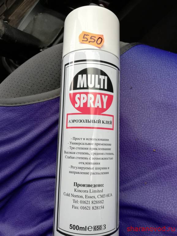 Вчера боролся с отслаиванием ткани от потолка в районе переднего стекла. Паралон разрушается и попытка приклеить край ткани на двухсторонний скотч, потерпела фиаско. Не снимая потолка, трудно ковыряться в таком месте. Поехал на рынок и взял клей. Жаль баллон очень большой, в мелкой таре ничего нет. Просто с баллончика нанес и приклеил, все чисто и аккуратно.