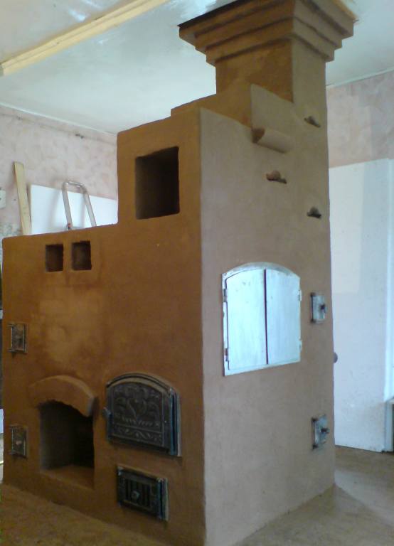 Печь штукатурить глино-песчаной бедной смесью, от жирной потрескает.