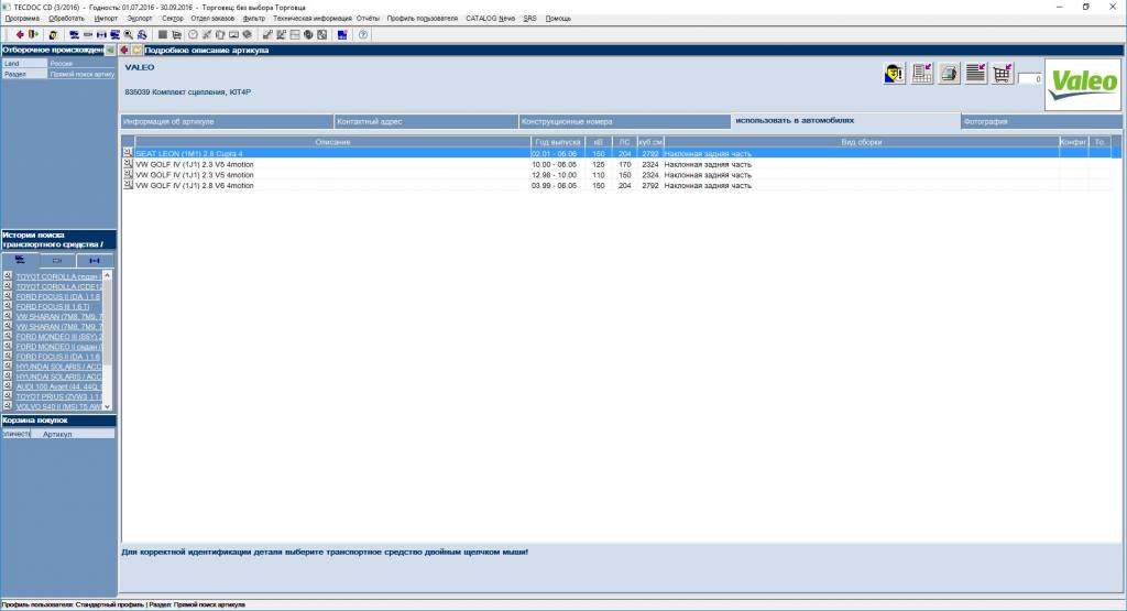 Достаточно ввести марку и комплектацию, в результатах будет отображаться стандартная запчасть и АНАЛОГ с одномассовым сцеплением если таковое выпускает валео