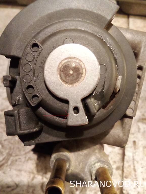 На колесе ДЗ, куда трос крепиться есть железная шняжка, вот эта: Она поджимает заслонку (моторчик её поджимает когда мотор прогреется). Если её на работающем двигателе (обороты 1950) поджать рукой к упору справа то обороты падают до нормальных 750-850, ну а угол ДЗ собсна ВагКом показывает тогда 6%.