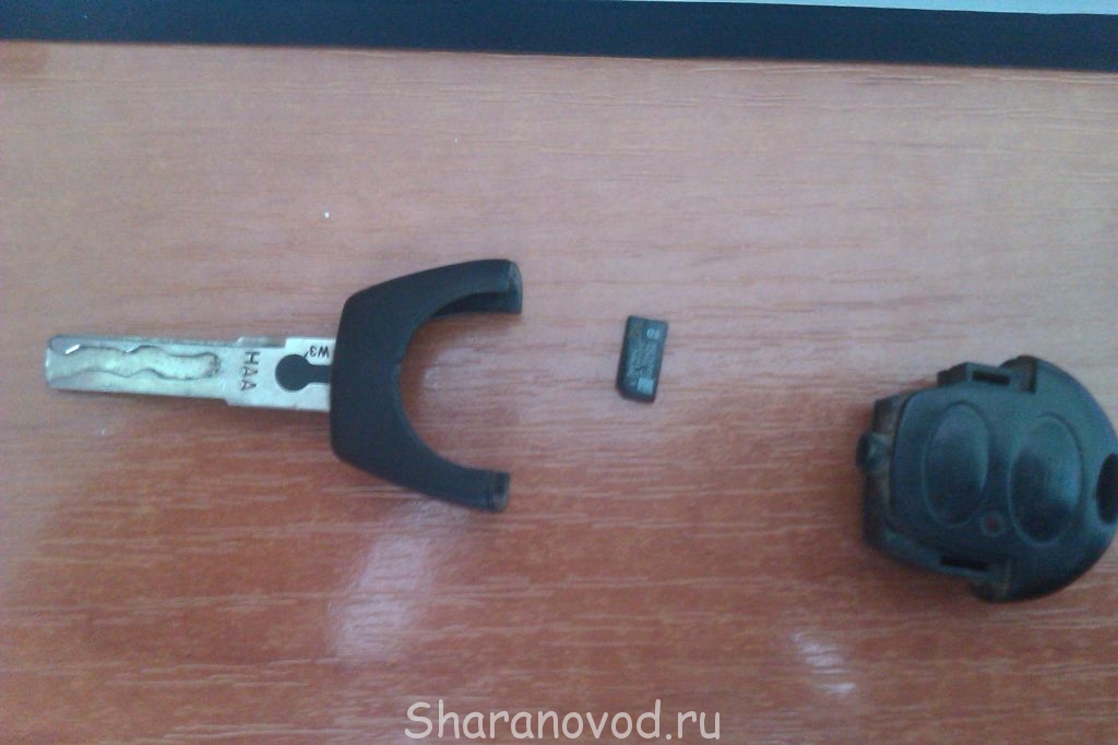 Вот ключ располовиненный, и чип (я его уже вытащил) А вот где чип стоит