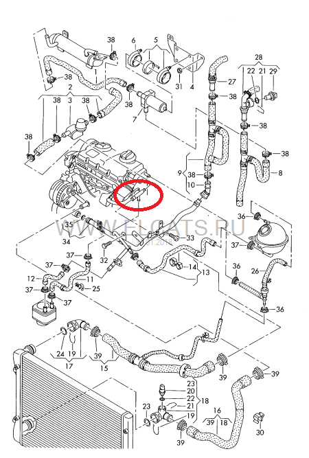 Всем вечер добрый. Народ, помогите с кат.номером тройника на фото (отмечен красным). Подозреваю его течь. Но, никак не могу найти его номер. Хотя один раз уже менял его.