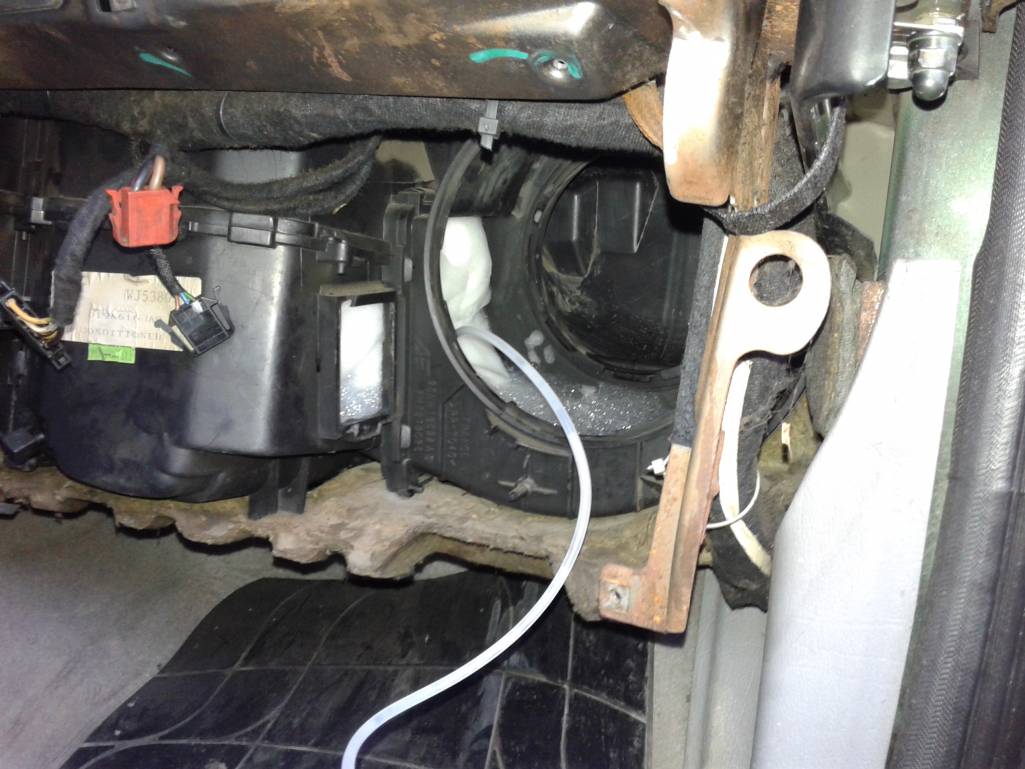 Т.к. торпеда снята и доступ к испарителю кандика более мение нормальный и упрощенный, задумал проверить сие... решил вводить средство не через воздуховоды, не через сливное... сделал отверстие между испарителем и радиатором отопления (на фото закрыто красной заглушкой)... использовал, перед и после применения химозы - эндоскоп, для телепонки, запись вёл, но оказалась без звука...видосы с камеры тела - норм, со звуком и пр. (видео будут ниже, кто захочет посмотрит... на оскар не тянут, да и не для того они были сделаны...