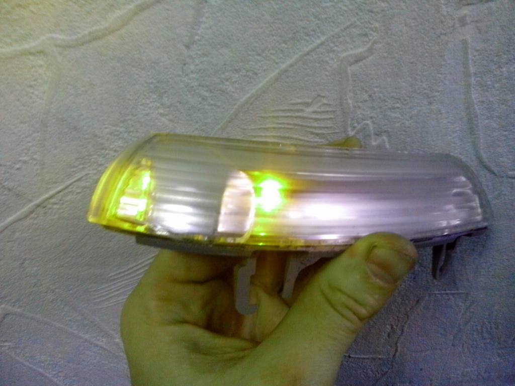Шахтёр, вся работа платы заключается в том, чтоб понизить напряжение борт сети, до напряжения необходимого для работы светодиодов. Я у свояка в шкоде, вообще выпаял эти светодиоды, что стояли, и впаял обычные из фонарика белые. Дырки заклеил желтой лентой, в целом получилось лучше заводского. Работали замечательно. Правда не долго. У него зеркало после ДТП, корпус расколот. Вода, соль дорожная навернула вот эту плату, сожрав её считай вместе с гетинаксом. Не стал заморачиваться, купил 6 обычных желтых светодиода с сопротивлением. Под 12 вольт. Спаял их паралельно, и присоеденил к проводам, что питание на плату подают. Все залил прозрачным герметом, и установил в зеркало. Второй год ездит.
