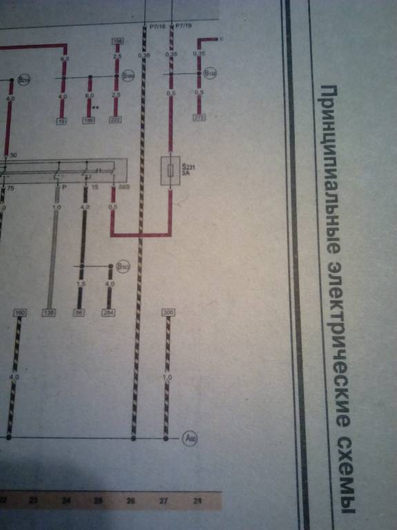 цифра в прямоугольнике 28 указывает, к какой цепи подключён провод. Ищем 28-ю цепь и видим, что через предохранитель S231 3A идёт от замка зажигания... Предохранитель на 3А стоит под номером 31, он был на моё удивление пробит , с первого раза я его не заметил...заменил на 7.5А , другого небыло...магнитола теперь включается при повороте ключа зажигания