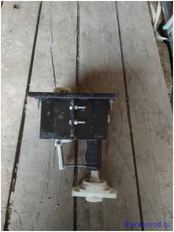 Для этого были изготовлены два соединительных элемента. Верхними концами каждый из них был прикреплен к своему боковому фланцу корпуса лебедки. Для крепления использованы болты с резьбой М6, которые вставлены в четвертое нижнее отверстие фланцев. В нижней части этих соединительных элементов были прикреплены болты с резьбой М8.