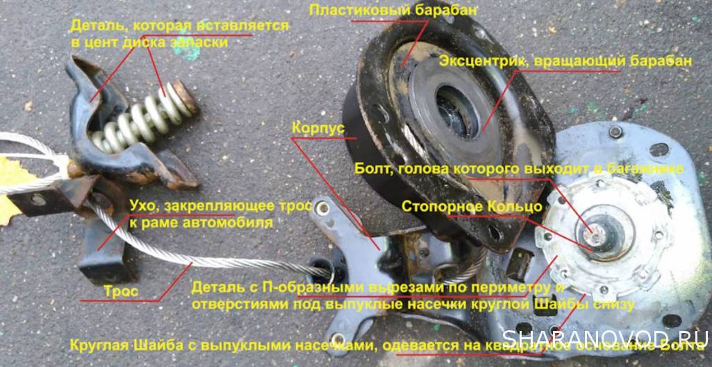 И ваще. Запаску снял 3 раз в жизни, а обратно никак. Впустую крутится и все, как только усилие. А так полностью вытягивается и втягивается. Шестерня или соскочил трос