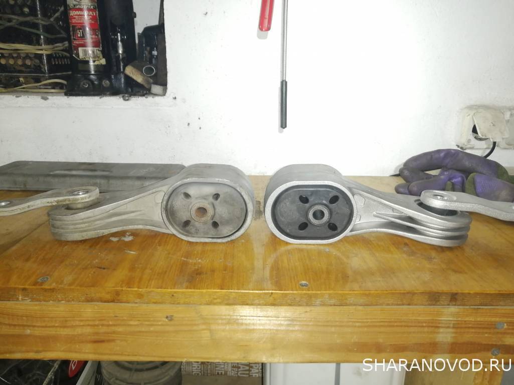 Заменил маятниковую опору, родная прошла 287 ткм., появился люфт в большом сайлентблоке и толчки при отпускании сцепления. Сразу скажу, что нужно менять и правую гидроопору, т. к. при установке новой маятниковой в большом сайлентблоке возникло приличное напряжение ( перекос). Новая опора swag. Снял корпус воздушного фильтра, а правая опора сочится маслом немного. Попытался выровнять двигатель, сдвинув его в крепления, но это результата не дало. Буду покупать гидроопору.