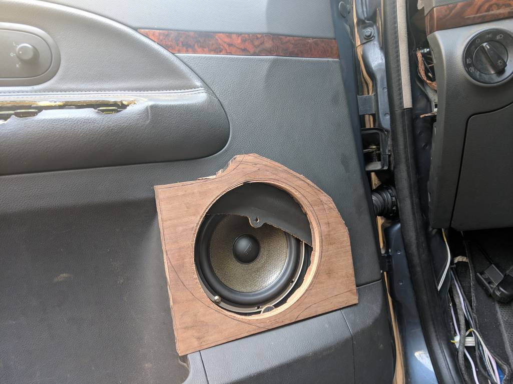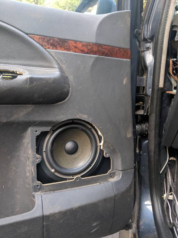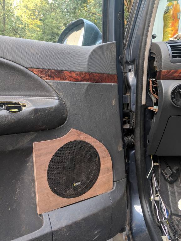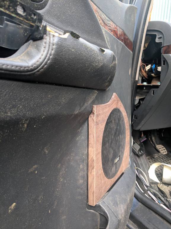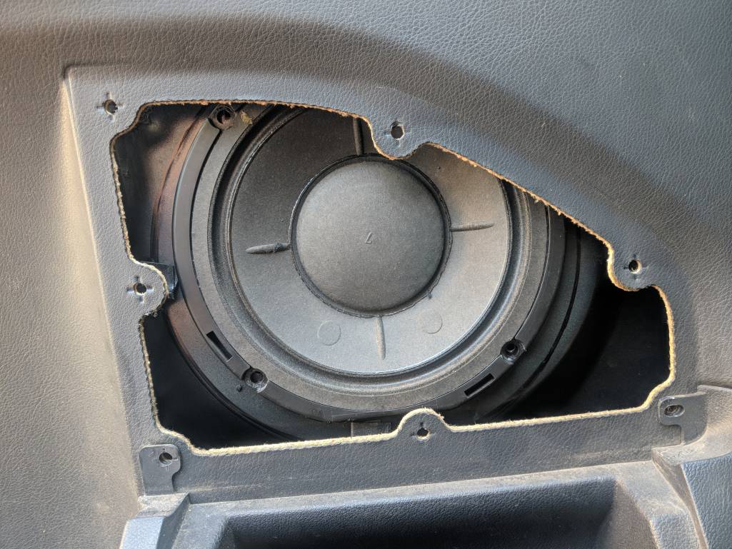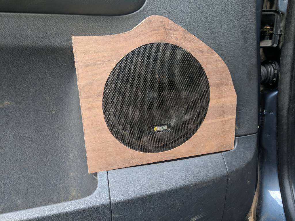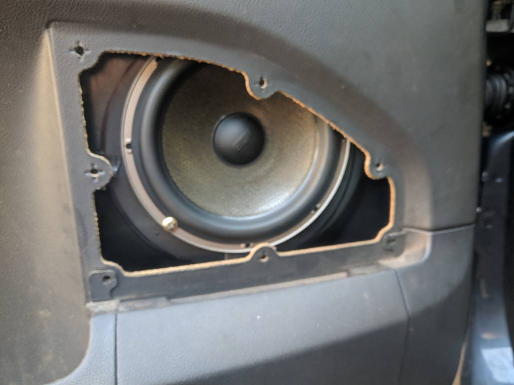 убери штатний гриль, отсавь от него контур. по контуру натяни музткань, динамик сдвинь вниз и назад как рисовал.