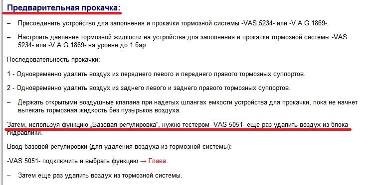 ... из-за того, что переместились клапана в блоке и их нужно выровнять, т.е. установить в нормальное положение... Это можно сделать пробной поездкой так, что бы система абс отработала несколько раз... или прокачать тормоза с помощью ВагКома (это уже без риска на дороге...) Кста, так и рекомендуется по офф докам концерна VW, при полностью опустошённой системе или пустом бачке, хотя бы одном...