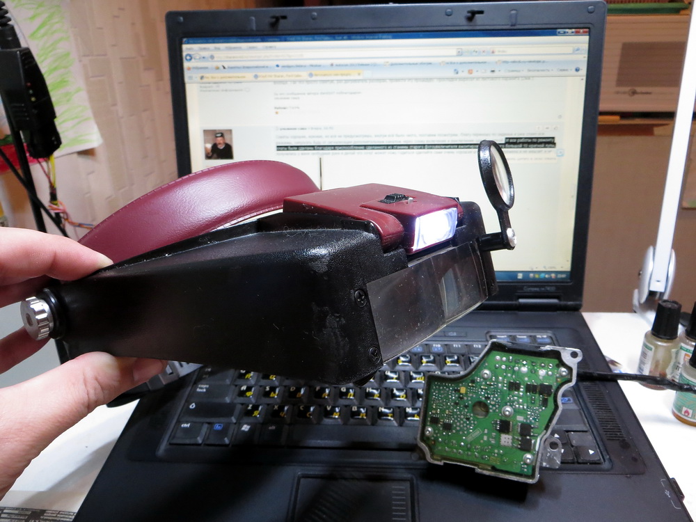 Мне больше нравится вот это. Там внутри 2 линзы, а меленькую дополнительную можно переставлять под основной глаз. Имется и похожее решение вопроса с подсветкой, но я пользуюсь первым вариантом. С лупой вашей проц я не перепаяю. Хотя на глазки вроде пока не жалуюсь. Мои годы не ваши конечно. Со всем уважением к старшему поколениюульянеев саша:И все работы по ремонту платы были сделаны благодаря приспособлению сделанного из станины старого фотоувеличителя вмонтированного в него большой 10 кратной лупы