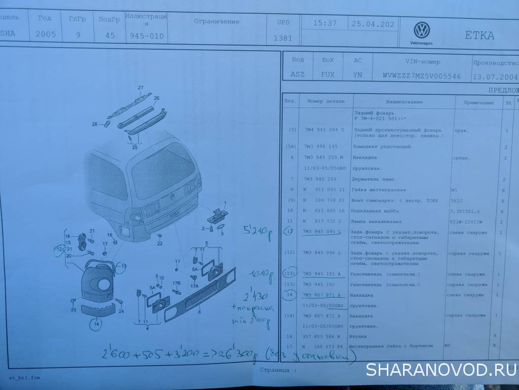 Также просчитал все позиции по етка и их каталогу с учётом износа 50% , без учёта работ 35т это самый низ со старым фонарем и без молдингов бампера