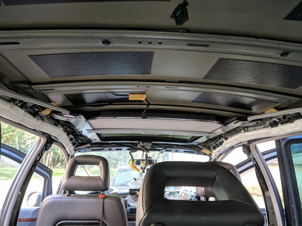 Ну и по кондёр потолочному какие мысли? Вперёд, во 2 ряд, воздух можно провести только там, где подушки. По центру высота есть, но в месте клипс потолок намертво прижимается к усилителю-там не пройти.