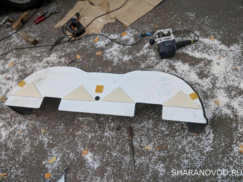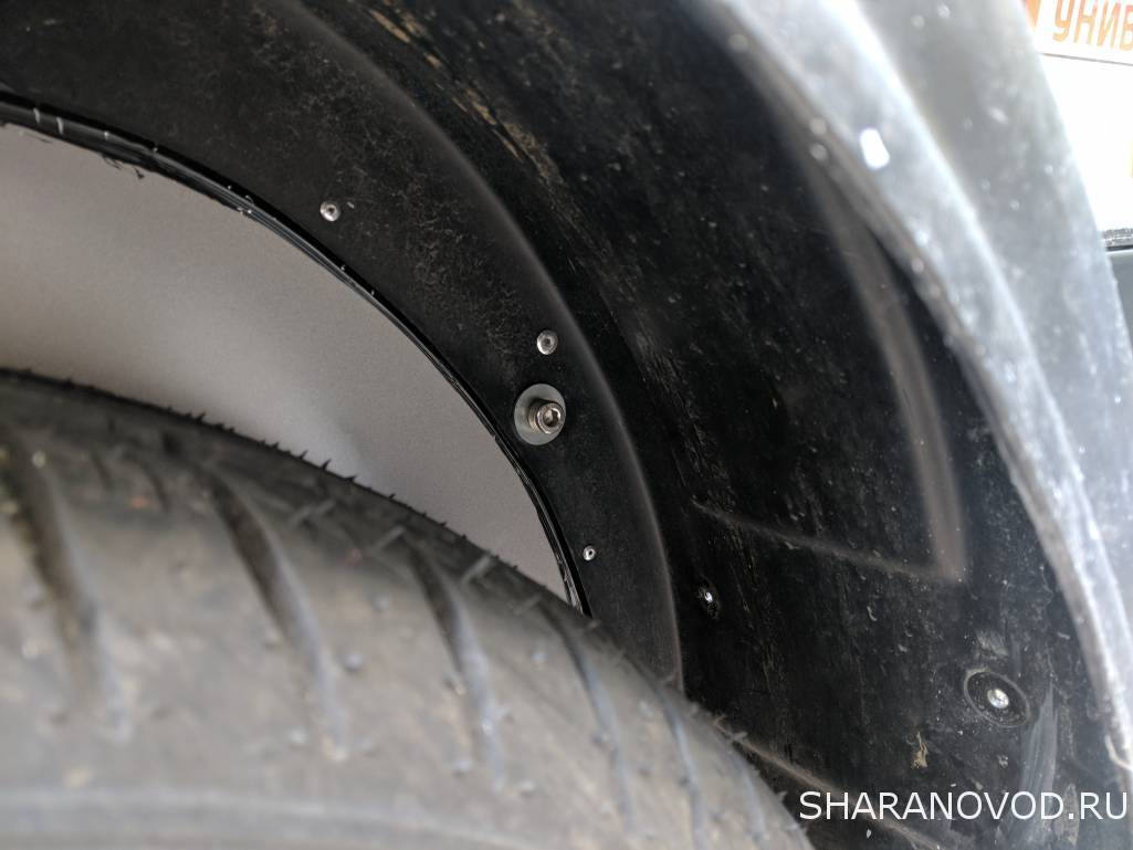 Примерил как было и не смог смириться. Задраны фиг знает на сколько выше, около 20см над колесом. Смысла так оставлять никакого. А вот как поставить... При смещении крыла штатные кронштейны уже не дотягиваются до него, гнуть новые хотел. Но идея с кронштейнами мне вообще не нравилась-теперь у меня боковина жесчте крыла и логичнее крепить ее, а не мягкий пластик