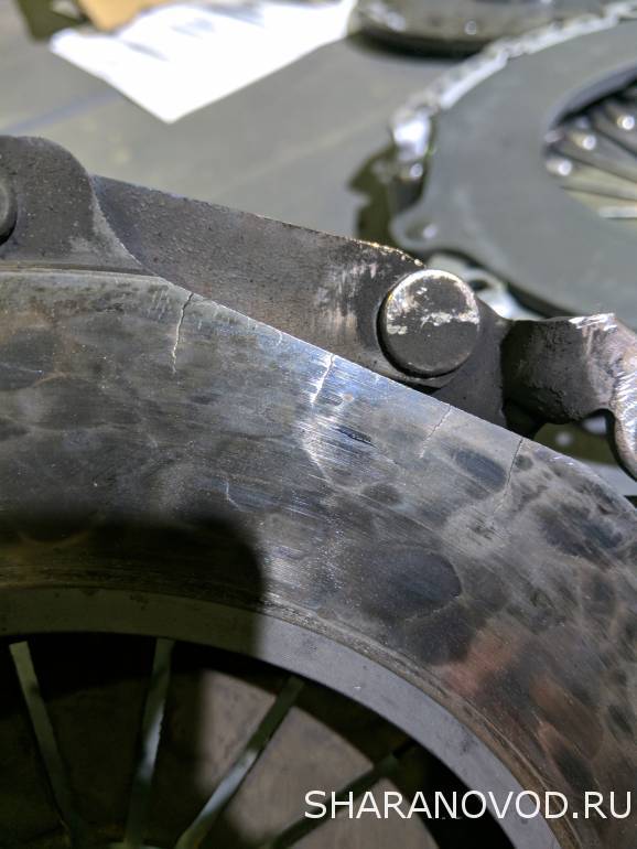 И маховик, и корзина подгорели, на корзине микротрещины. Глубоко или нет пока не рассматривал