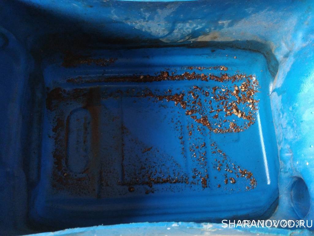 Поддон из двадцати литровой канистры сделан. Перед промывкой радиатора он был чистый.