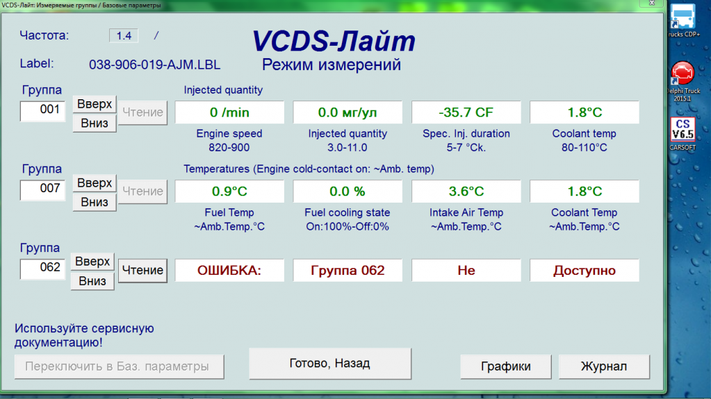я бы еще 7 группу вывел на графику и посмотрел бы показания во время прогрева и во время езды. никаких скачков и прыжков быть не должно.