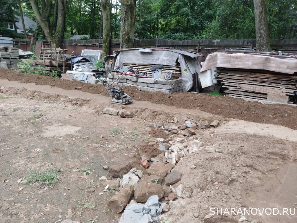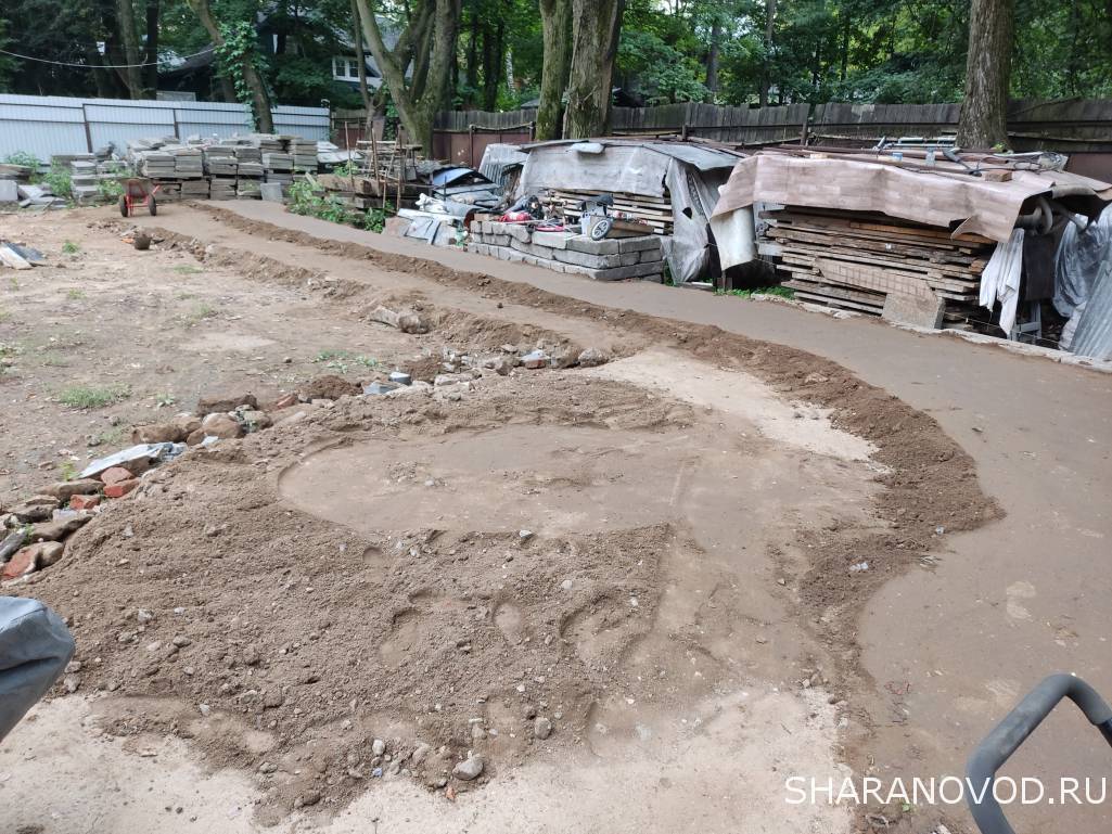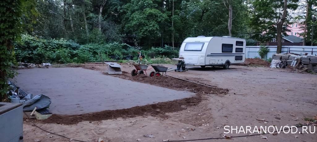 Времени нет на машину, только участок более-менее подготовил, 400 кубов песка развез и трамбанул. Параллельно ещё камни сортировал, короче веселуха. Так, пару фото Надо зимовку прицепу подготовить, пришлось плитку временно класть прям на песок Местами до 65 см подъем участка
