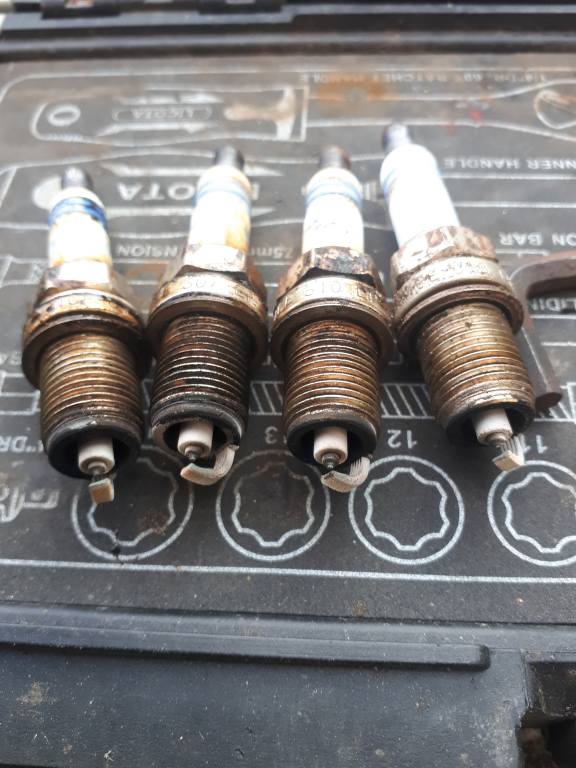 На двух крайних свечах зазоры явно отличаются от центральных, на свечах должен быть зазор 0.8мм , чем точнее тем лучше.