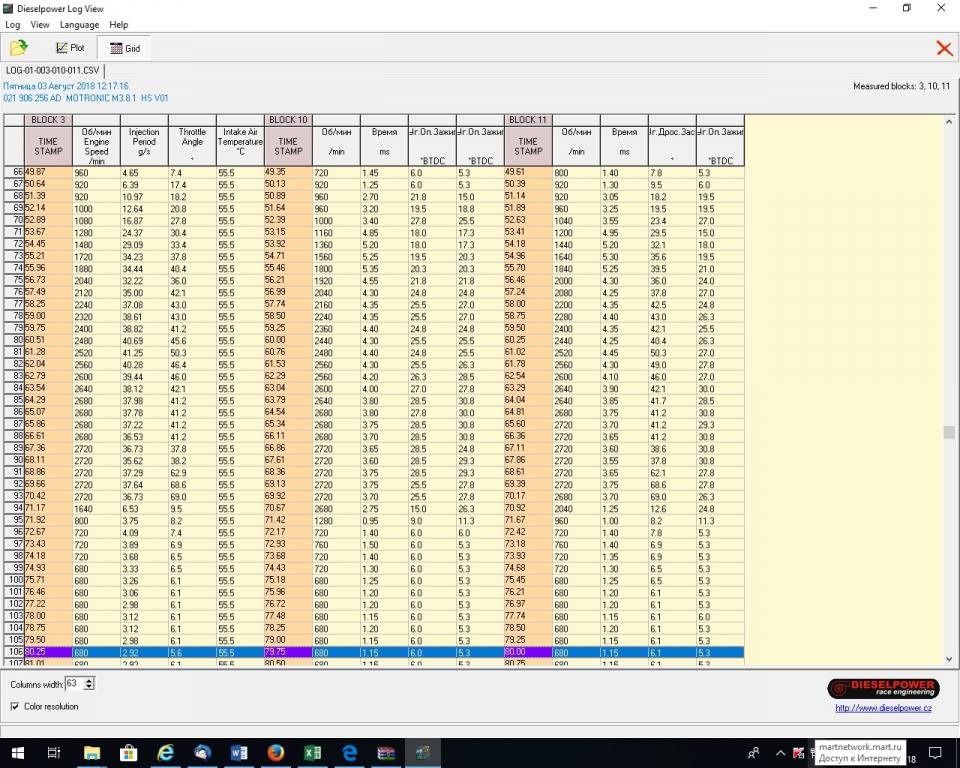 Логи не информативные, меня сейчас больше всего волнует УОЗ. Но сняты логи на двигателе прогретом всего на 60 градусов и раскрученом до 2800 оборотов. Они почти ничего не дают.