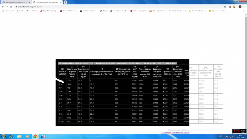 Есть провал давления в самом начале лога. Я бы предположил, что 75-й клапан хочет чтоб его почистили или заменили.