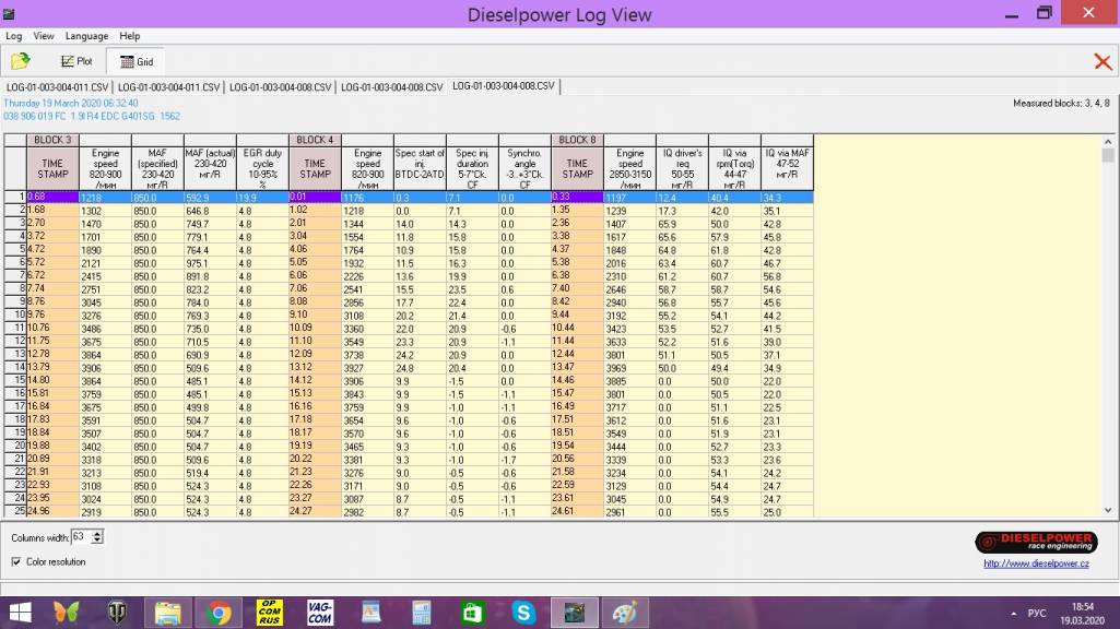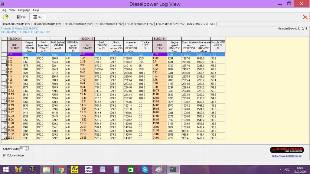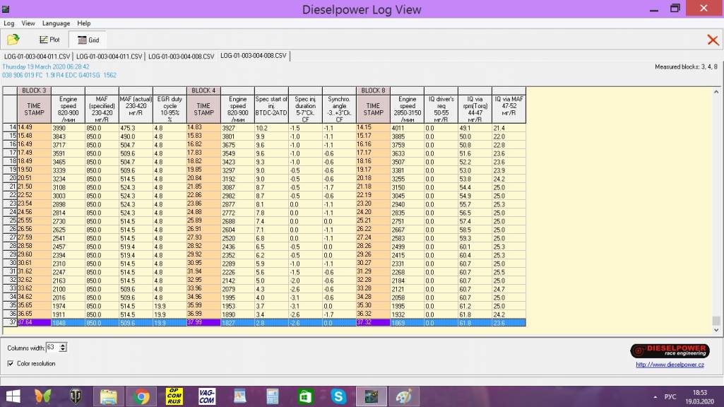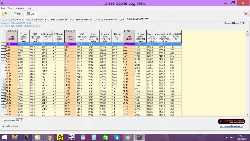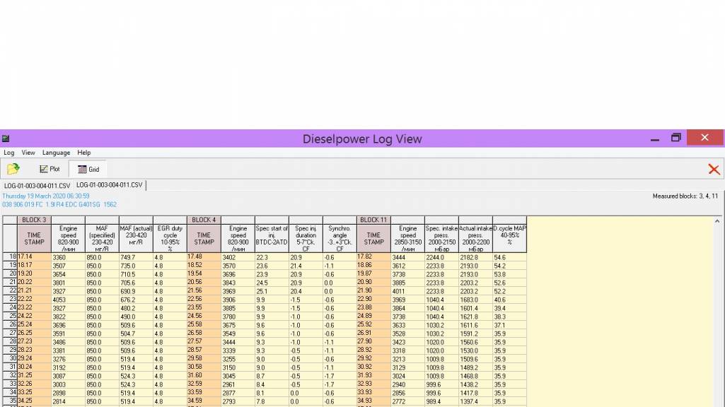 Посмотрите пожалуйста логи снятые с двигателя AEB. Кажется, у него проблемы с воздухом, задыхается при нажатии тапка в пол и еле раскручивается. Словно и нет вообще турбины. Опрессовку кстати провели, всё хорошо. Ошибок в ЭБУ нет, до снятия и после снятия логов проверил.