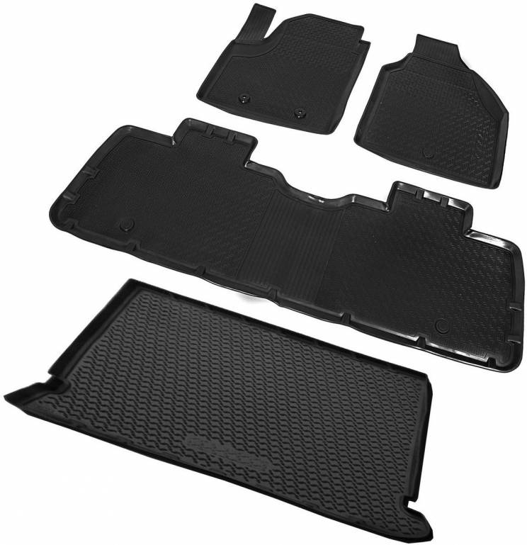 Комплект ковриков салона и багажника Rival для Volkswagen Sharan I рестайлинг минивэн 2005-2010, полиуретан, с крепежом, 4 шт. K15809001-2