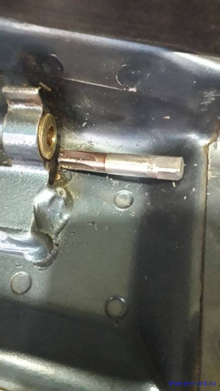 С проходом вставленной втулки разверткой 8мм в верхней петли двери не было проблем. А вот с нижними петлями вышла засада: