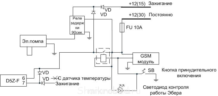 Это включение от сиги, а как от телефона? можно подроблей, без доп расходов, телефонов GSM лишних много.Cateika: одно простецкое реле, включаемое доп.каналом от сгн-ки, подаёт "+" на пины эбера с плюсом от "15", через диодные развязки... ессно, и организовать включение доп.помпы ОЖ... так в двух словах...
