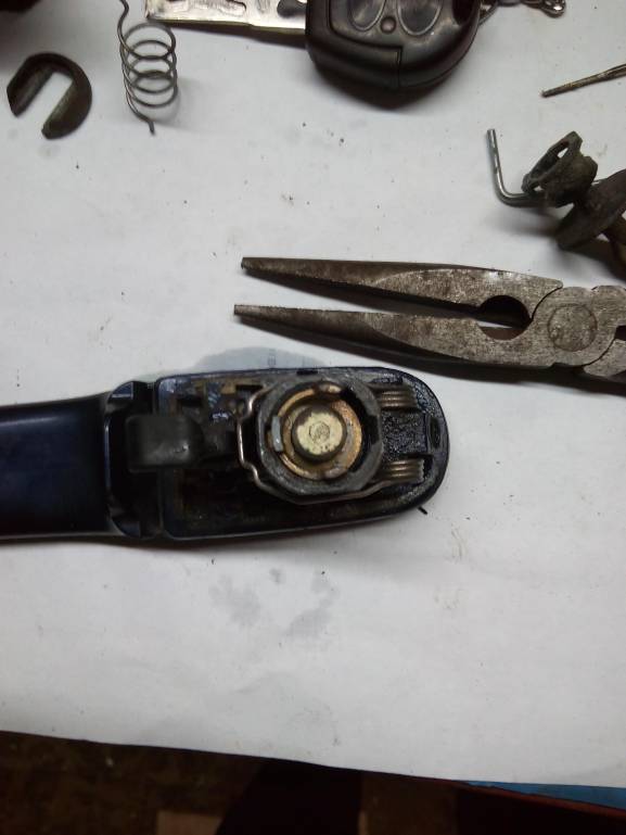 насчет ручек. прикупил 7724733SX за 4уе. хорошая с виду ручка. взял аж две. со второй "собачку" металлическую снял и переставил на водительскую ручку. нужно вибить штифт и в принципе легко снимается