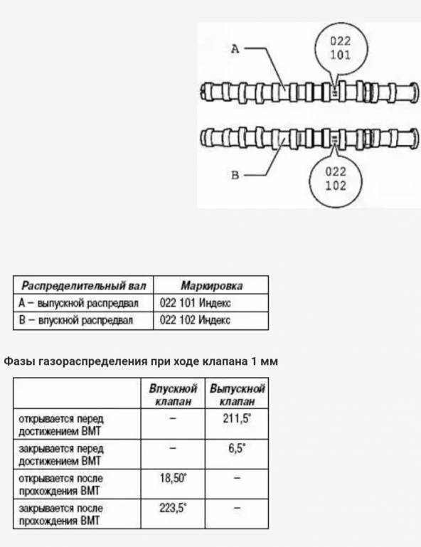 прошу помощи в поиске фаз распредвалов для vr6 aaa и тому подобных ДВС. Вот то что нашел, но ето по моему на 24 клапанной - может они одинаковые?
