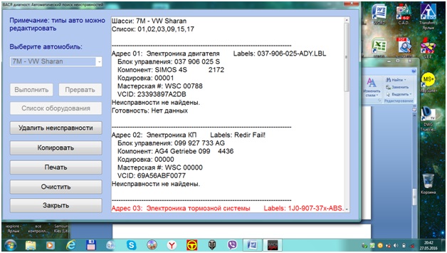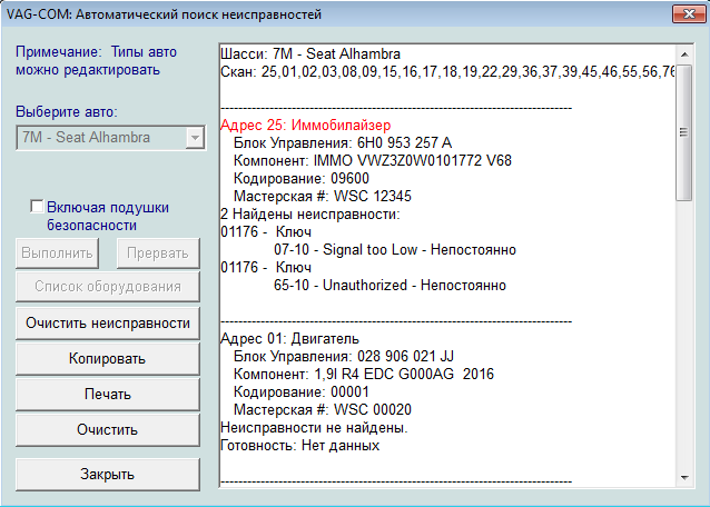 1) Опрос адреса 01 при сканировании и отдельно происходит только на незаведённой машине. На заведённой этот адрес не опрашивается отдельно, а при авто-сканировании адрес вообще выпадает из списка блоков. (К примеру- управление АКПП читает без проблем, как и другие блоки и отдельно и авто). На первой странице темы описан случай когда вообще блок двигателя не опрашивался, но у меня опрашивает при незаведённой, значит дело не в проводке?