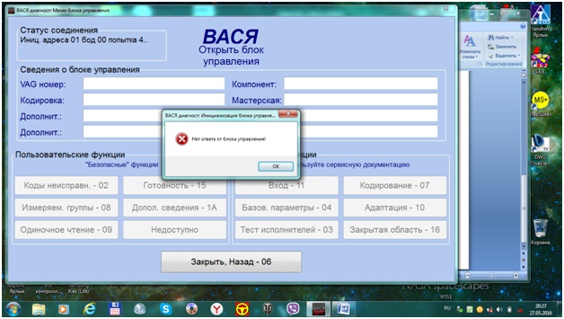2) Подушки безопасности опрашиваются только при авто-сканировании. Отдельно в блок не заходит. при попытке войти выскакивает окно: "Зажигание выключено" кнопка ОК. Выключаю зажигание, жму кнопку. Затем: "зажигание включено" кнопки- продолжить/отмена. Включаю зажигание, при нажатии "продолжить" отправляет на второй круг- опять "Зажигание выключено"/ОК...