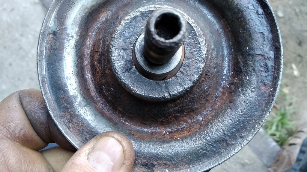Добрался таки я до снятия пружины. Опорный подшипник заклинивший напрочь. Но не суть вопрос в другом. Что сейчас делать с тарелкой?