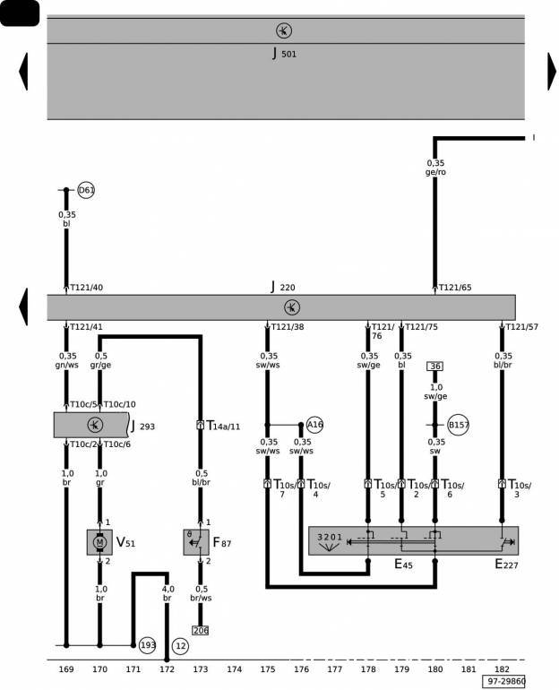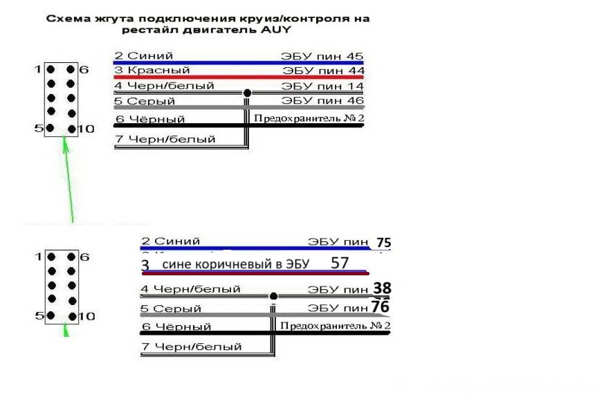 Глянув на схему из етки, нашел, что подключение круиза контроля идёт к контакту 75.