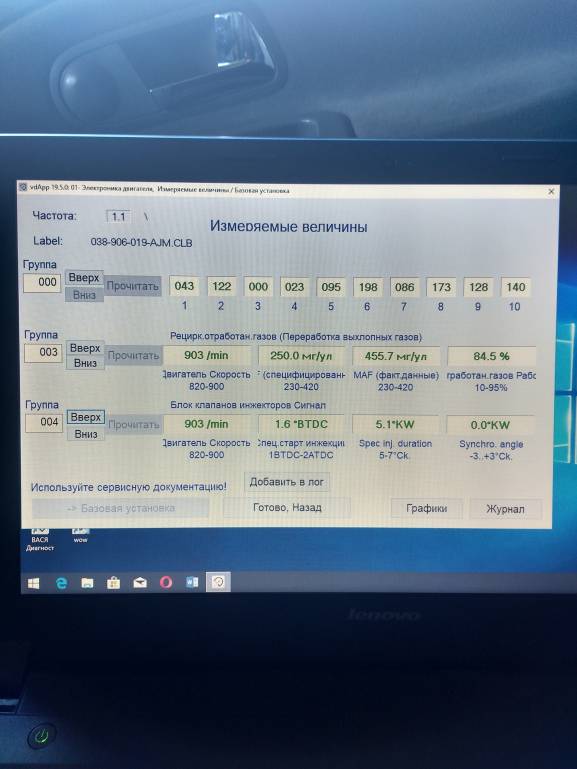 (примечание: система EGR устроена так, что после 2-3 минут простоя на холостых она отключится. поэтому следует проводить измерния ЭТОЙ группы, в эти первые