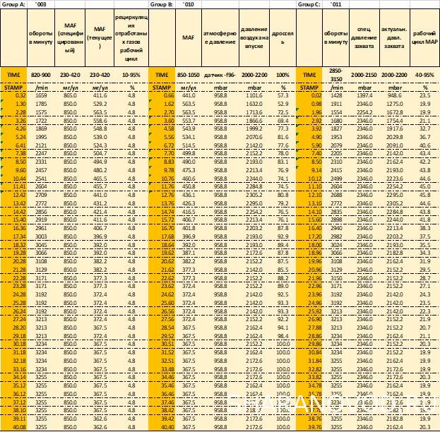 Сегодня снял логи. Получилось только с 30 км/час на 3 скорости до 3200 об/мин. Больше автомобиль отказывался ехать. Сейчас на уме только: