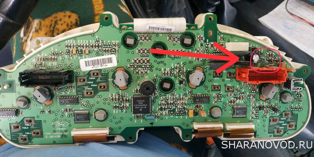 Помню возле красной фишки в районе конденсатора один резистор пропаял, отвечал за правильные показания топлива и температуры ож. Отметил красным где я паял, там все резисторы нужно пропаять что отмечено.
