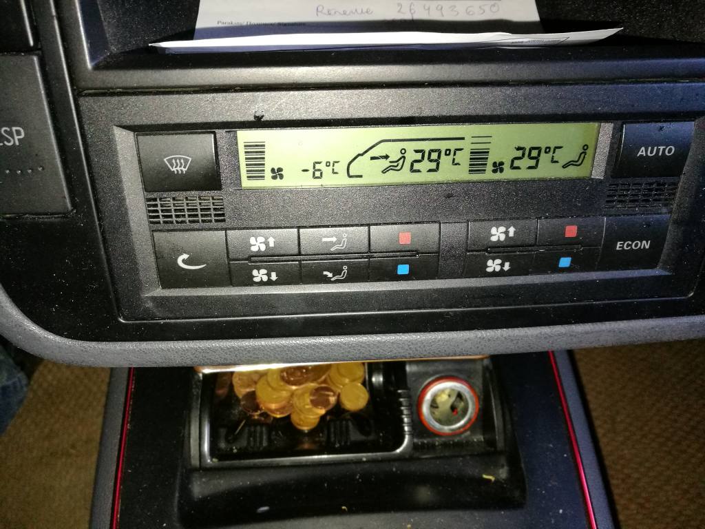 ainars, тут есть отчёт о пыли на датчике температуры в блоке климы. Проверь, может и у тебя пыль. Можно попробовать просто пропылесосить дырки. Кстати, а задняя печка при этом как дует?