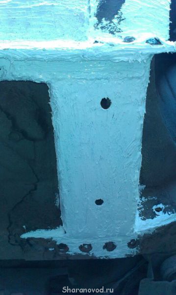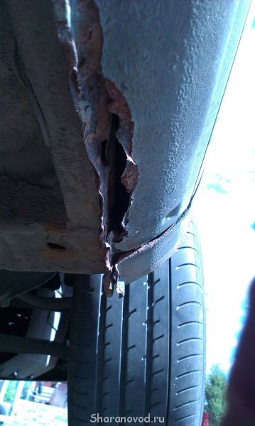 Веселого мало. Но позитивный момент тоже присутствует. Сгнил сам шов погнутый, и немного рядом. Когда вырезал часть внешней накладки порога, она же не силовой элемент, тоненькая, внутри усилитель совсем без следов ржавчины. Только небольшой краешек, шов который погнут. Там заржавел. Да и то не сильно.