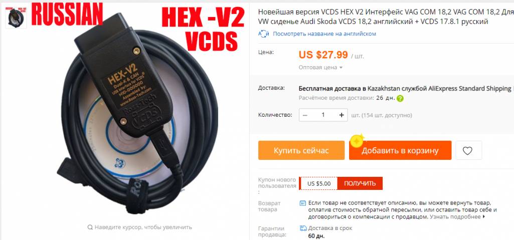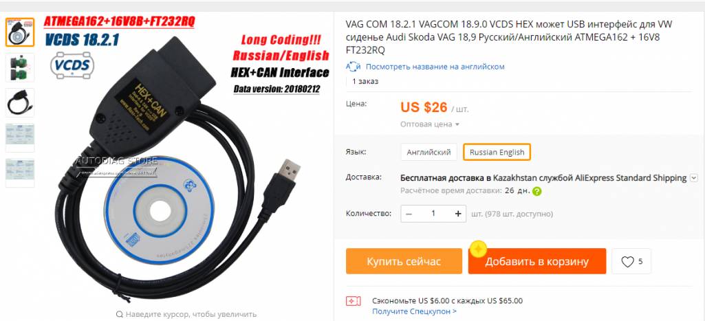 Поэтому, чтобы найти этот шнур (ну, или другой версии) ПРОСТО, использовать на алике ПОИСК и ввести фразу: " VCDS 18.2 Английский/Русский" и обязательно выйдут варианты... Вот и всё, пожалуй...