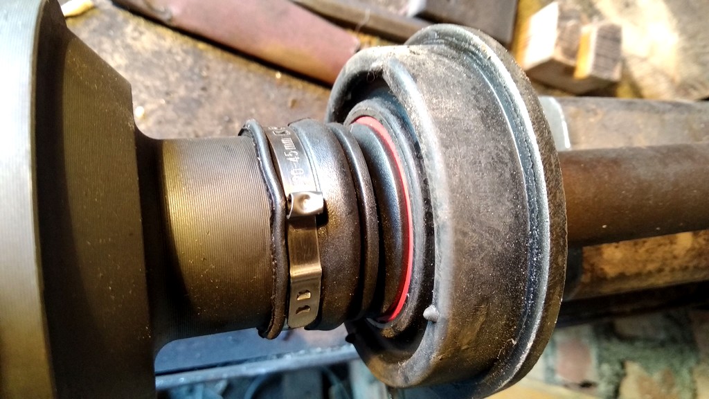 Идея не моя, однако подобрать по диаметру "гармошку", пыльник, от той же рулевой рейки, не целиком, а кусок, который уплотнится при соединении... или тот же пыльник недорогой от Б3 от шруса...