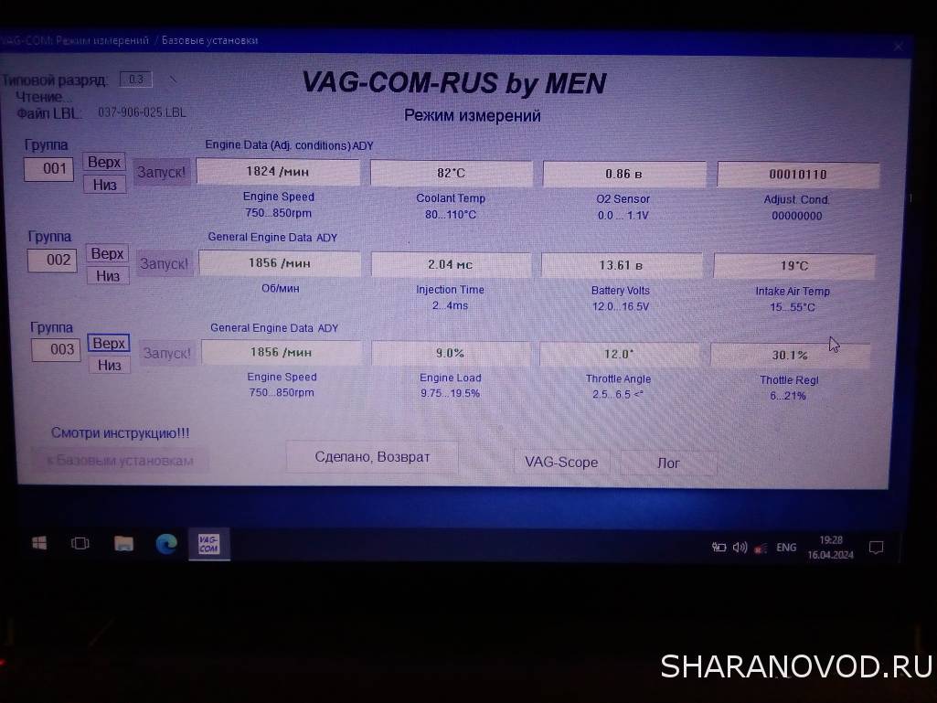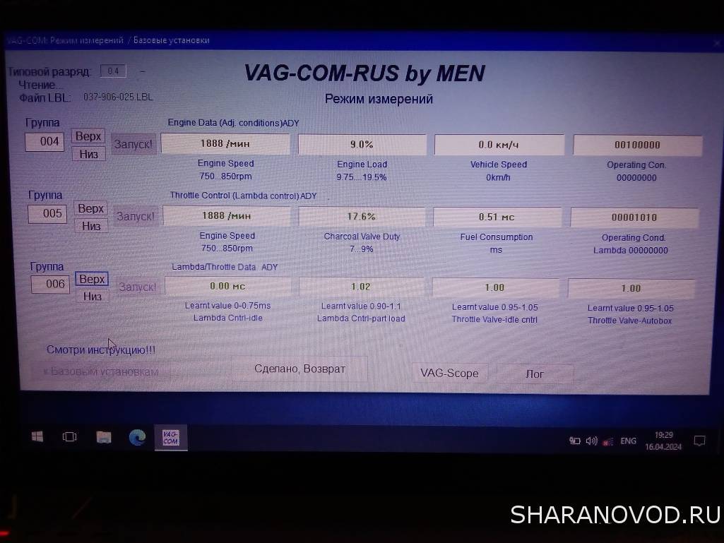 Вот мои картинки, как у меня всё происходит (на темп мотора не смотрите, я зашел просто чтоб показать чё ково, на горячем также было) моторник читаю ошибки - их нет, иду в адаптацию: читаю, сохраняю, иду в базовые ну и потом вверх на 001 после чего ничего не происходит.
