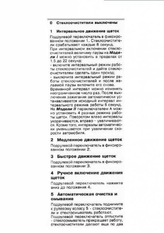 И что я из этой картинки понять должен? По ней у меня передние дворники работают в положении 3 . В режиме 5 срабатывают омыватели, дворник не шевелится, если переключатель не в 3 положении.