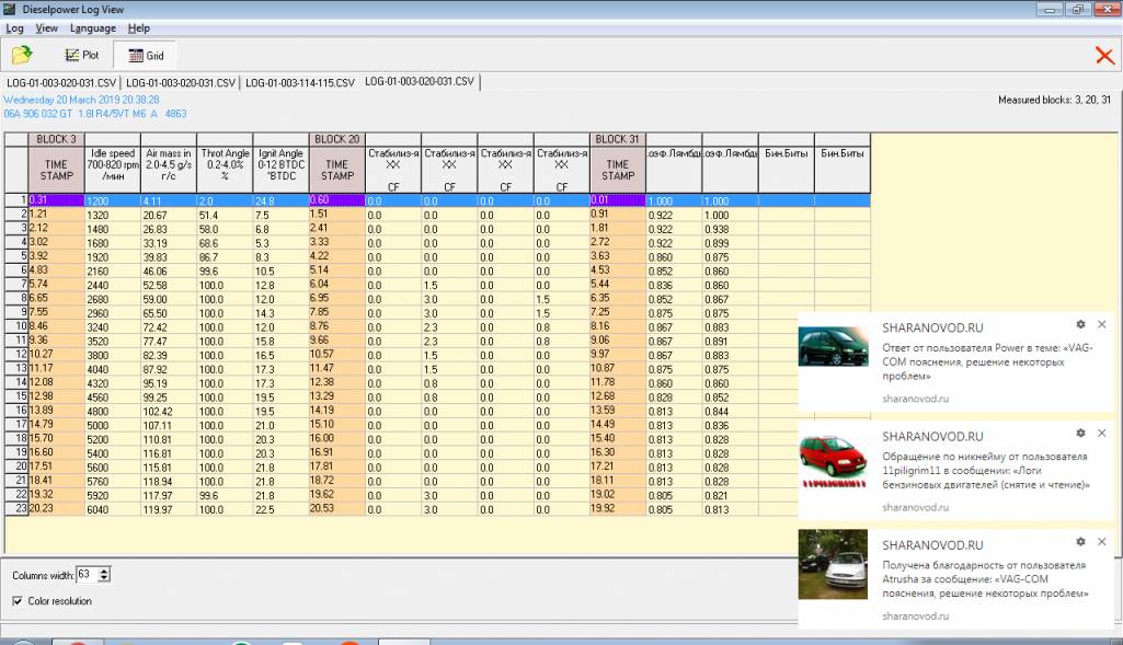 Логи бензиновых двигателей (снятие и чтение)