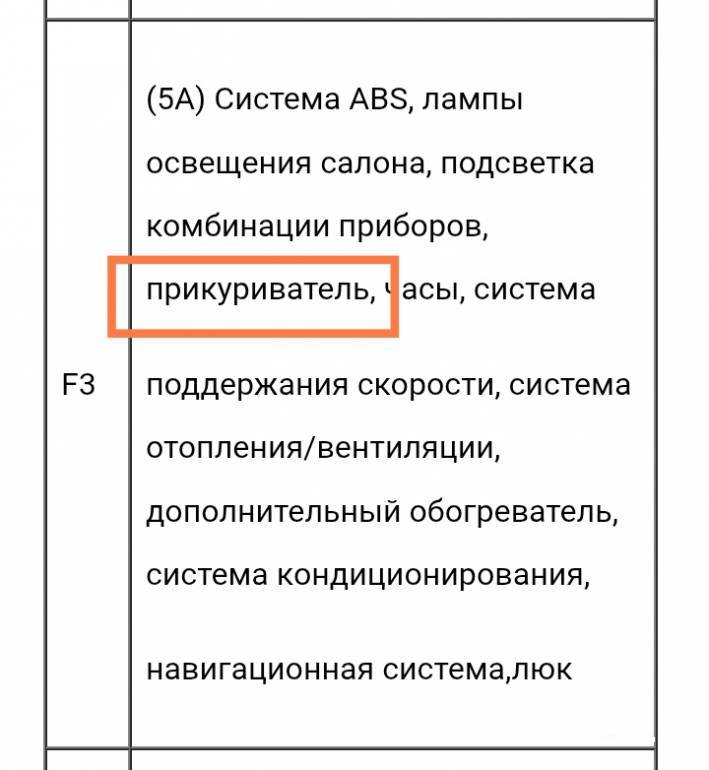 Пропала напруга на проводе прикуривателя. Там идет жгуток из трех проводов. Плюс, минус и подсветка. Хотел проверить поедохранитель, но какой конкретно идет на прикуриватель? Сейчас в гараже. Компа под руками нету, не могу сзему глянуть. Вот какой то сайт нашел, так их там несколько