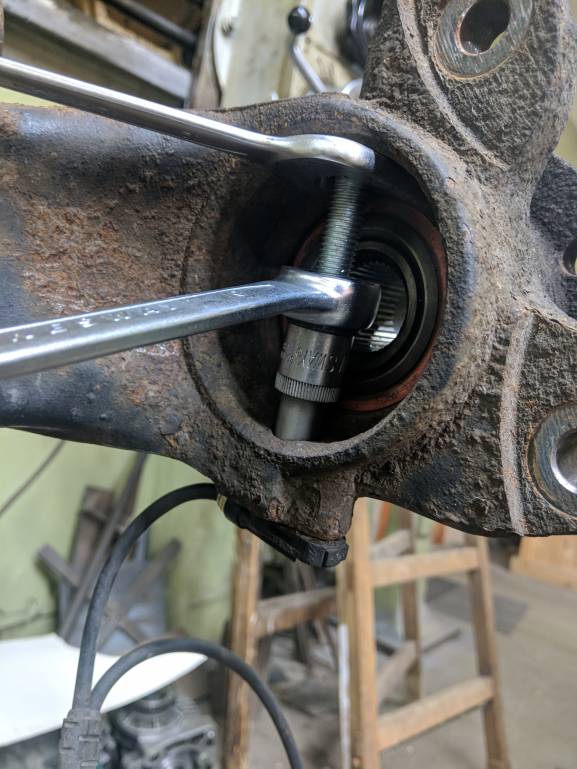 Дальше перешёл к рычагам. Ни керосин, ни уксус не помогают вытащить датчик АБС. А срано-ржавое и не обслуженное я ставить на машину не могу