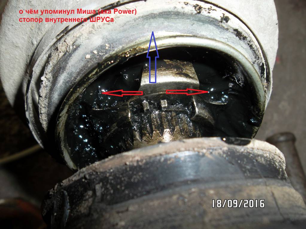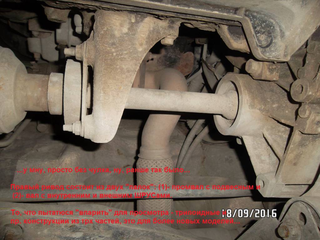 Привод размыкается на две половины. Промвал с подвесным подшипником, и обычный привод. Из интересного, внутренний ШРУС на полуоси сидит на стопорном кольце, с ушками. Смазка всю протереть, увидишь внутри паз с ушками от кольца.
